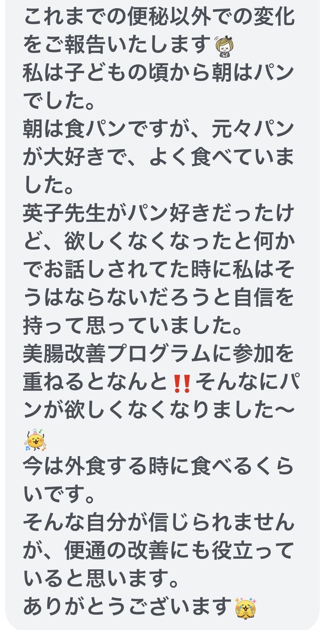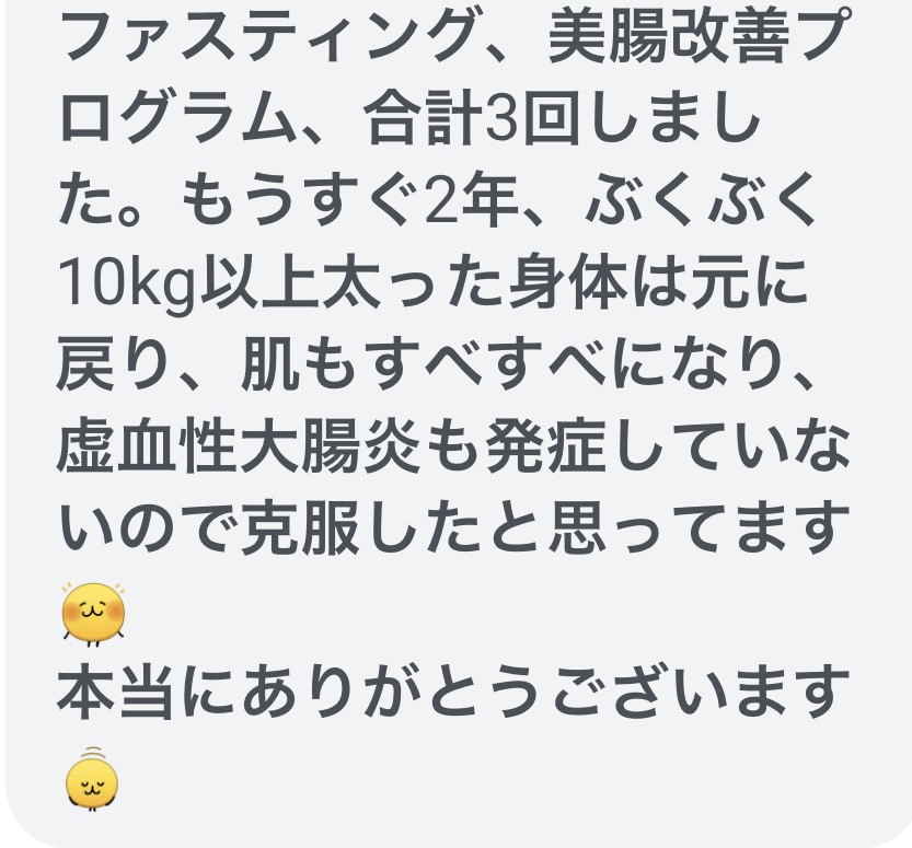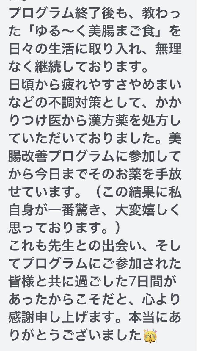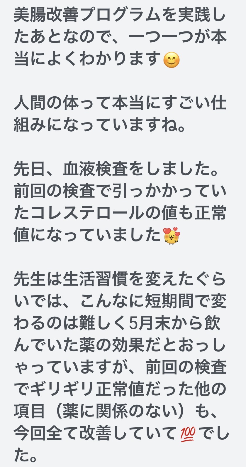 美腸改善プログラムに参加された方(一部の方)の感想をご紹介します。