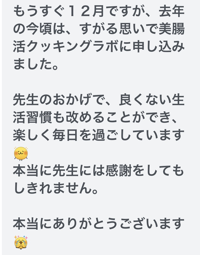 「美腸活クッキングラボ」は、一年間で美と健康を手に入れるお料理と知識を身につけて「健康自立」していただくお料理教室です🌸 12年前、 …