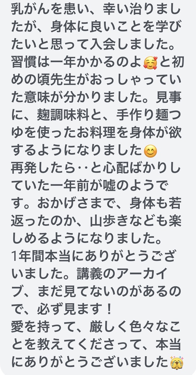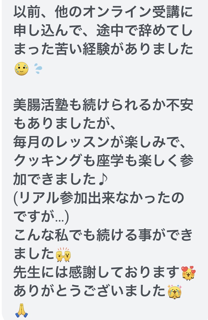 ※ 毎月のクッキングレッスンでは、季節に合わせた「腸にやさしい家庭料理」を学びます🌿